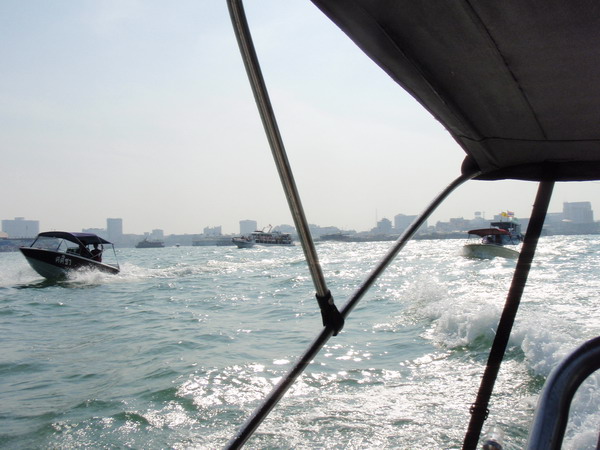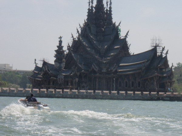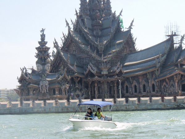 คำตอบที่ 52 ลัดเลาะผ่าน . . ชายหาดพัทยา . . * * * มีต้มข่าไก่ให้ดูพอหูตาสว่าง , เรือลากกล้วย , สาวน้อยในชุดบิกินีบนร่มบินมีให้เห็นมากมาย . . น้ำลายไหล . . * * * เลยหาดพัทยามาหน่อยก็เห็นปราสาทไม้แล้ว . .
