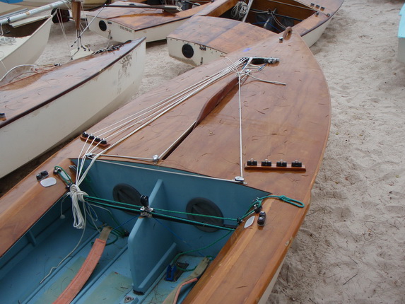 8. spinnaker sheet leads เป็นห่วงสำหรับร้อยเชือกที่จะบังคับ ใบลูกโป่ง หรือ spinnaker ซึ่งในรูปนี้ไม่ได้แสดงไว้