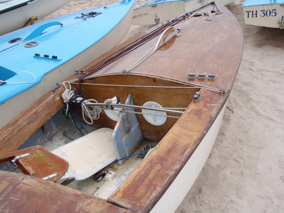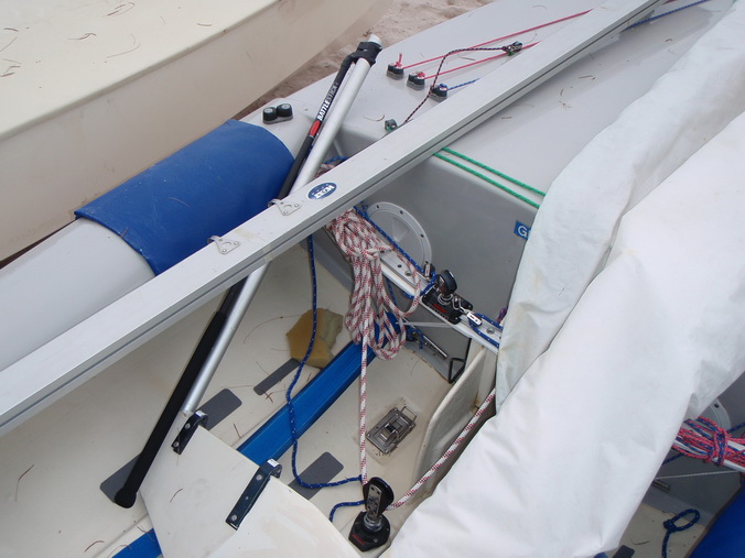 6. tiller extension หรือด้ามต่อพังงา เพื่อบังคับหางเสือ ต้องใช้เวลานายเรือ ขยับตัวมาด้านหน้าหรือช่วยลูกเรือโหนถ่วงเรือ ไม่งั้นเอื้อมไม่ถึง