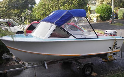แปลนอีกลำที่มี ลำนี้ยาว 12 ฟุต กว้าง 6 ฟุต ความยาวยืดเป็น 13 ฟุตก็ได้ ท้องเรือ 14 องศา ในแปลนมีแบบให้วางทั้งเครื่องวางท้องและเครื่องเกาะท้าย เรือลำนี้ลุยคลื่นดีมากๆออกแบบมาให้ใช้กับชายฝั่งทะเลและเขื่อนที่มีคลื่นสูง แต่จะโคลงเวลาจอด เพราะท้องเรือกว้างเพียง 56 นิ้ว แปลนนี้ของ HARTLEY BOATPLAN