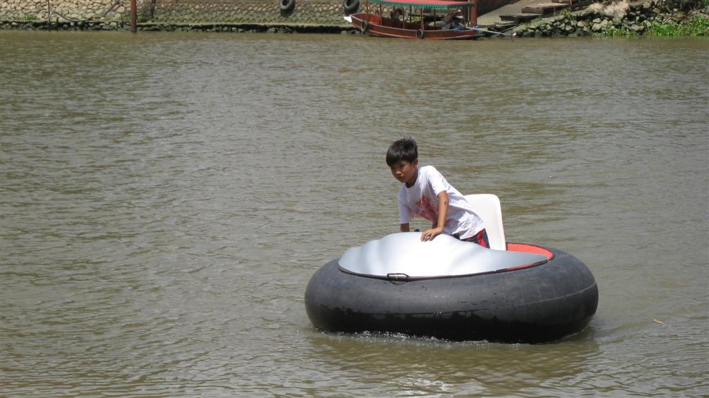 คำตอบที่ 5 หลังจากที่ดู shop จนหนำใจ เราได้เห็นว่ามีงานวิจัยดีๆ ที่เปลี่ยนมาเป็นชิ้นงานที่สามารถนำไปใช้ได้อย่างมีประสิทธิภาพหลายๆชิ้นด้วยกัน มีทั้งเรือ preed สอบถามแล้วได้ความว่ามาจากคำว่าปรี้ด ขนาดประมาณ 5 เมตร เกาะด้วยเครื่อง short tail ขนาด 13 แรง ทำความเร็วได้อย่างน่าทึ่งเลยครับจากที่เห็นใน clip เสียดายวันที่ผมไปเรือต้นแบบออกไปดันผักตบที่ใหนสักแห่ง เลยไม่ได้ลองขับ คราวหน้าคงไม่พลาดแน่ แต่มีอีกอันนึงที่ผมชอบมากคือเรือ bump boat ทำจากยางรถแทรคเตอร์ ขับเครื่องด้วยเครื่อง shibi ขนาด 1 แรงม้า ผมลองขับดูแล้วให้ความบันเทิงได้ดีมาก และค่อนข้างปลอดภัยเลยทีเดียว ในรูปเป็นน้องใบพัด ลูกชายคนรองของคุณ slalom ครับ