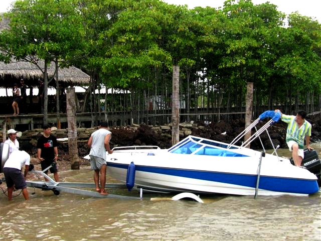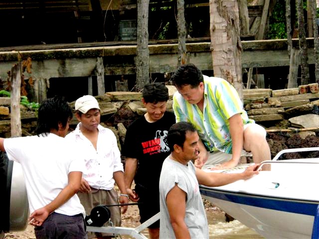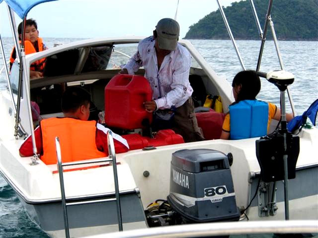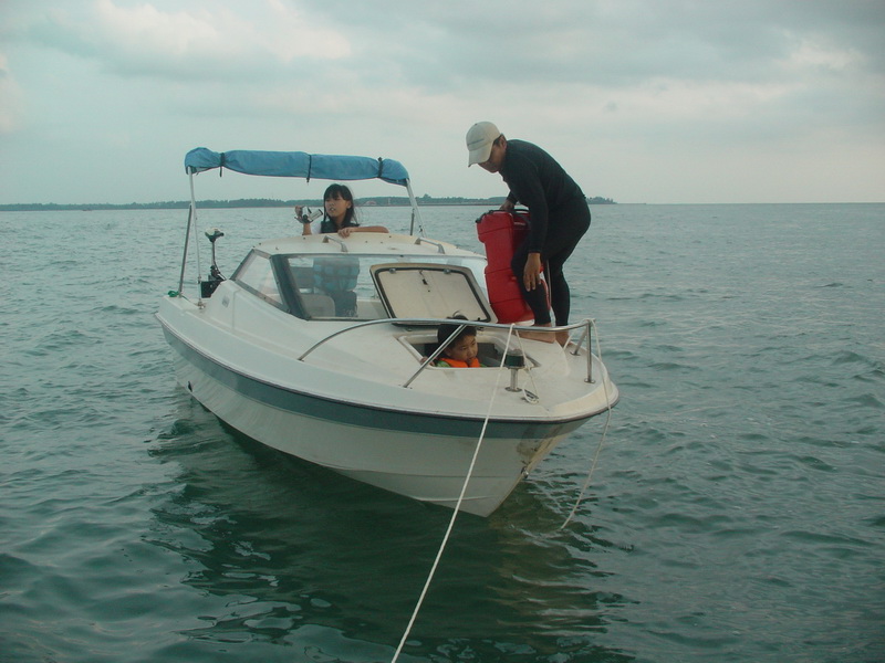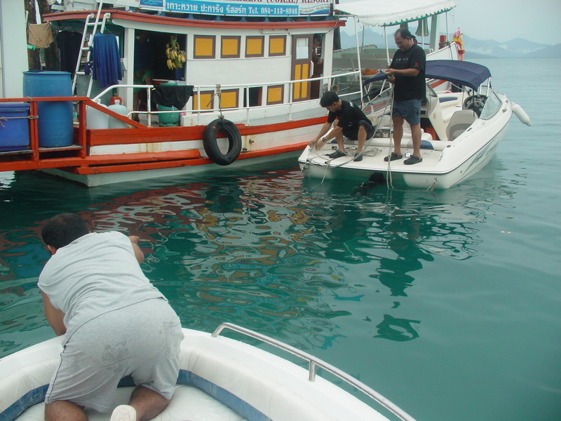 อ๋อที่แท้ก็แบบนี้เอง เหมือนชะตาฟ้าจะแกล้ง... ต่อเรือเสร็จ 8 ธันวา 52 ออกทริปแรกไปเกาะสาก ขาไปขับไปขากลับลากกลับ..สายน้ำมันรั่ว,แบตหมด,ทริมเสีย, ช่างดำก็แก้ไขให้เรียบร้อย