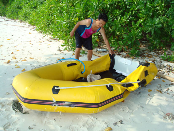 3.ได้ใช้ประสิทธิภาพเรือแบบสุดๆ Sigliner ผม Spec ได้ 3 คนครึ่ง แต่อัดกันไป 7-8 คนก็ยังไปได้ ด้วยความที่อยากส่งเขาให้ถึงที่ตื้นๆ ไม่งั้นต้องลุยน้ำไกล เพราะ Slope น้อยมาก ก็ลุยเข้าไปเลย เรือยางโดนหินรั่ว ต้องวิดน้ำกันตลอด ไบพัดเยิน ก็สุดๆอีกเหมือนกัน