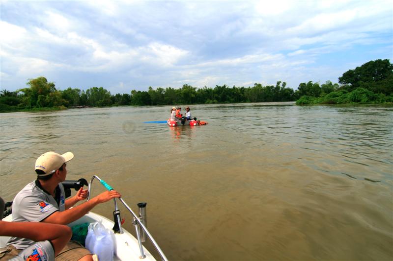 ส่วนผมแยกไปซอยตรงข้าม ซึ่งไม่มีเรือเลย เพราะน้ำแรงมาก และก็ไม่ลึก มีตั้งแต่ต่ำกว่าเข่าถึงหน้าอก เรืออื่นไม่มีใครไปกันก็เป็นที่ทดสอบเรือยางท้องแบนกันละ ผมบอกได้เลยว่าที่สุดจริงๆ คือ