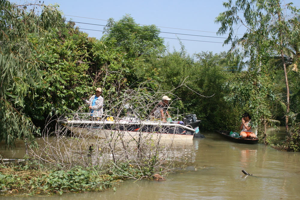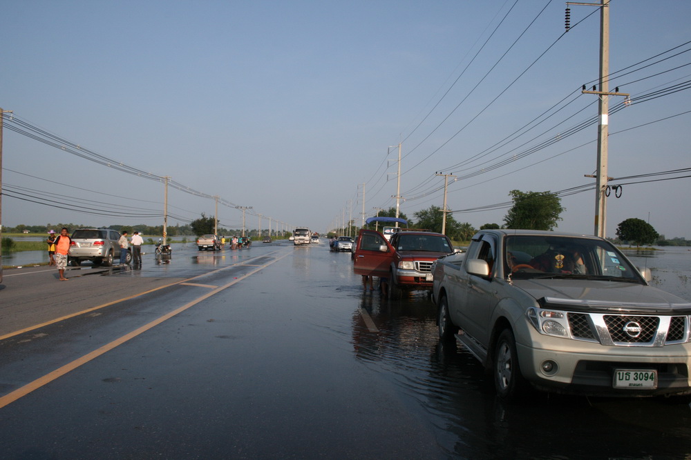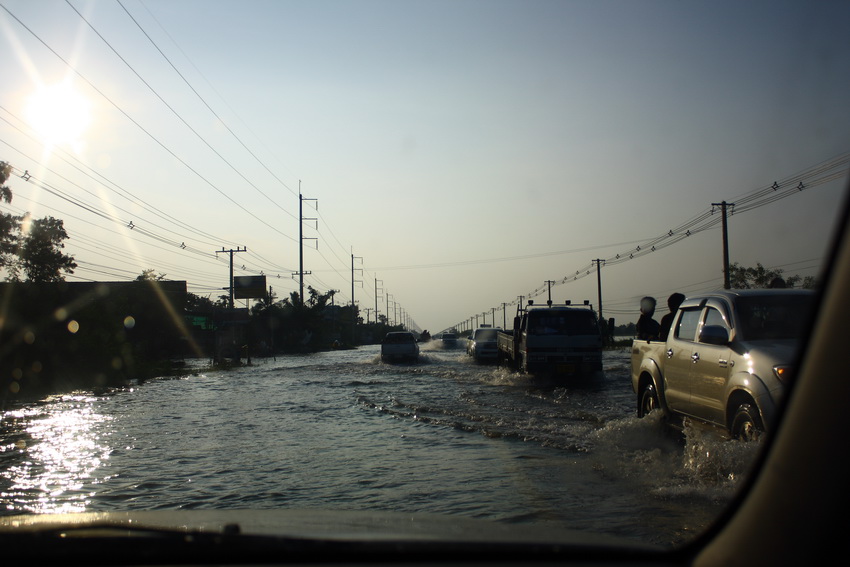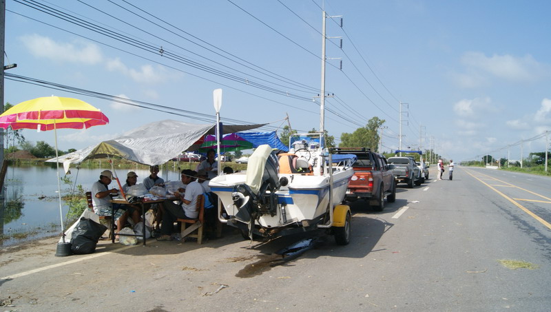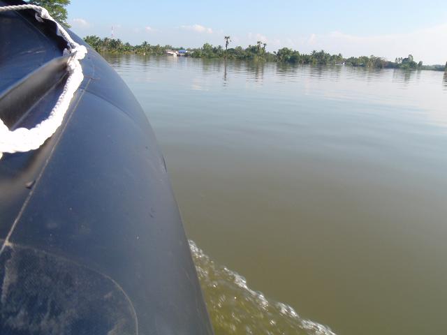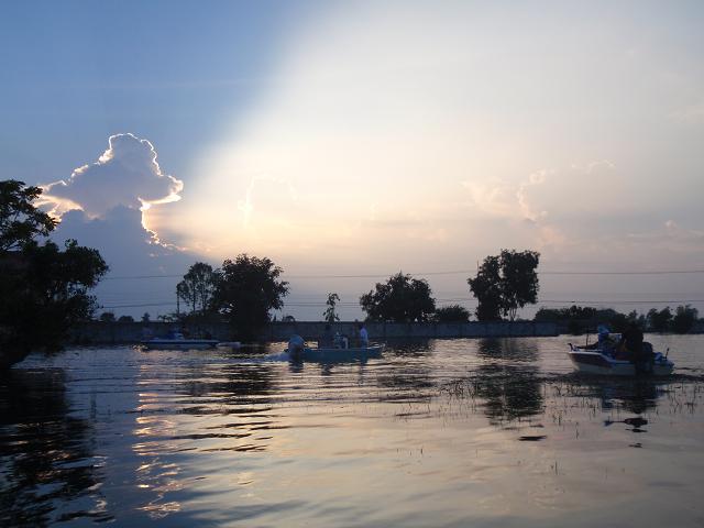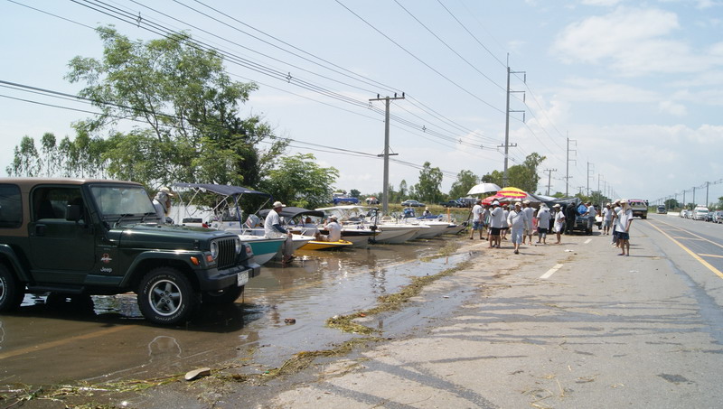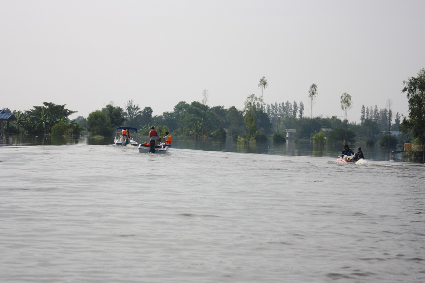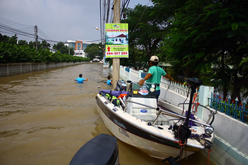 1.น้ำแรงสุดๆ ผมเร่งจนหมดขณะสวนน้ำเรือยังอยู่เฉยๆเลย แรงน้ำกับเครื่อง balance กันพอดี ต้องซิกแซกซ้ายทีขวาที ก็จะกระดึบได้ทีละหน่อยๆ มีน้ำมาตามซอยอีกทำให้เกิดน้ำวนอีกถ้าพลาดก็หมุนถอยหลังไปอีก 20-30 เมตร กว่าจะตั้งลำได้ เวลาตามน้ำ ก็ปล่อยลอยแบบล่องแก่งทั้งพายทั้งเครื่องต้อง ช่วยประคองให้เรืออยู่กลางซอยแคบๆ ไม่งั้นก็จะชนกับต้นไม้ เสาไฟ และ รั้วบ้าน บางบ้านก็เป็นรั้วลวดหนามอีก ขับเรือมานานไม่เคยเจอมันๆแบบนี้มาก่อนเลย ชั่วโมงแล้วชั่วโมงเล่า ที่ต้องทำแบบนี้จนถึงสองทุ่ม