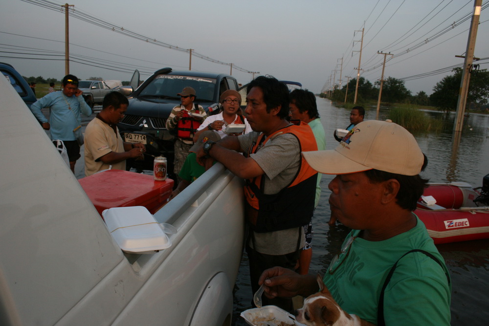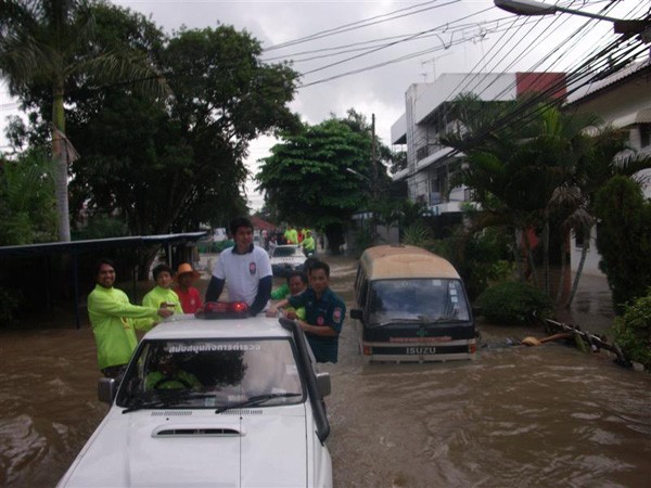 รพ.มหาราช ผม,น้านมและน้าภากร พยายามเข้าไปช่วยแต่น้ำตื้นเป็นช่วงๆจะใช้ เรือยางก็ไม่ได้ น้ำก็แรงเป็นบางช่วง Off road ก็ใช้ไม่ได้ โหดมาก ได้อย่างเดียวคือรถทหารคันโต สูงๆ แต่ก็ไม่พอใช้ เราก็เลยย้ายจุด ไปที่ รพ.เซนแมรี