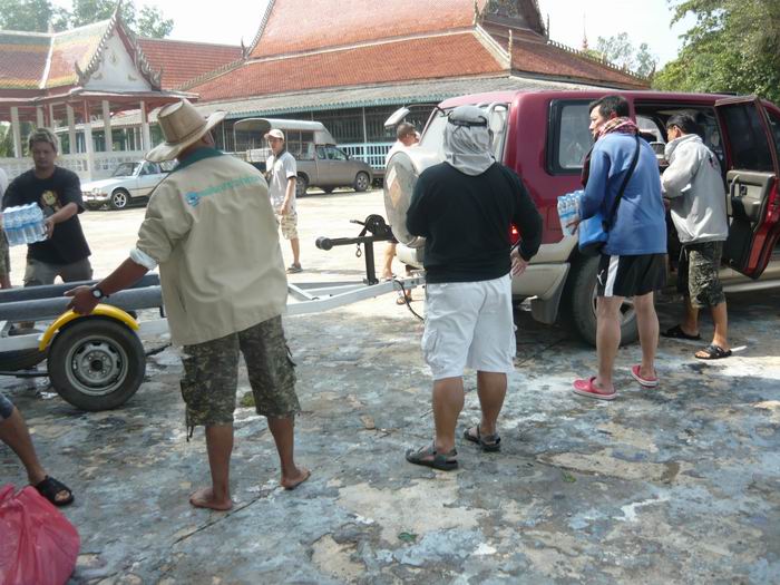 คณะผู้ร่วมคาราวาน ชมรม Toyota4x4Club@WeekendHobby.Com ที่ร่วมเดินทางขนถุงยังชีพ เรือ ในช่วงเช้าพร้อมนำสิ่งของร่วมบริจาค และ ช่วงบ่าย ชมรมกลุ่มคตถามทาง บริจาคข้าวกล้อง 2000 กล่องพร้อมถุงยังชีพ และนอนค้างคืนที่วัดเป็นเพื่อน กองเรือของเราครับ