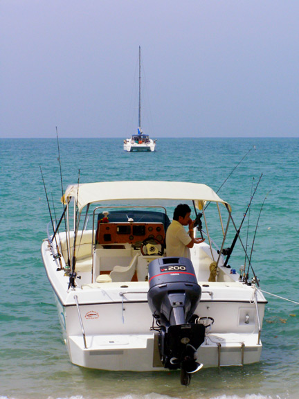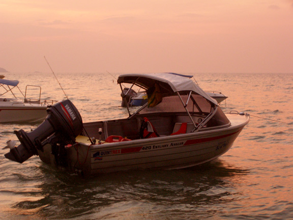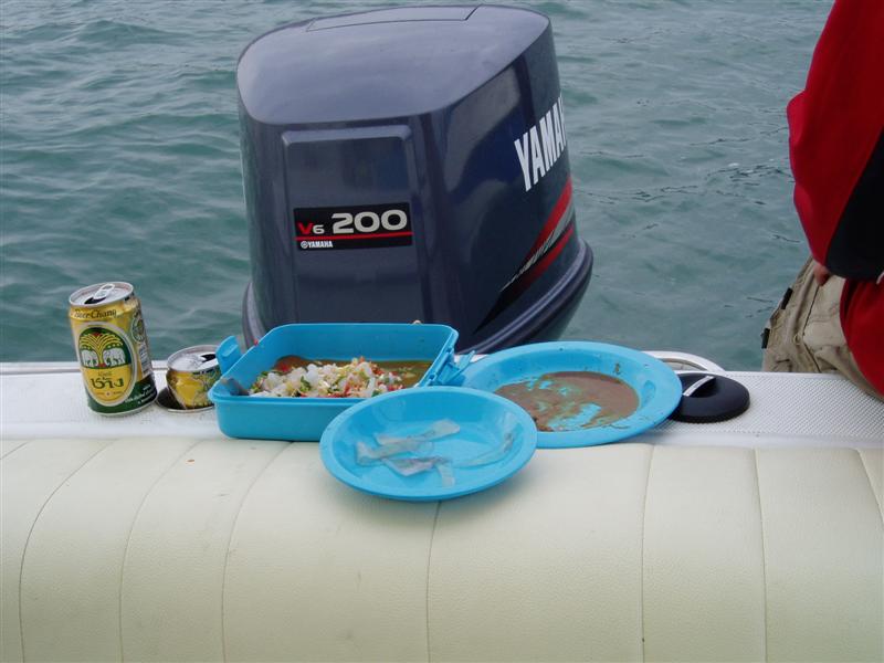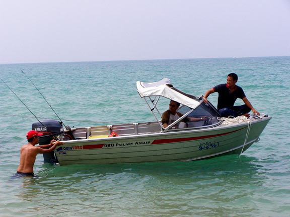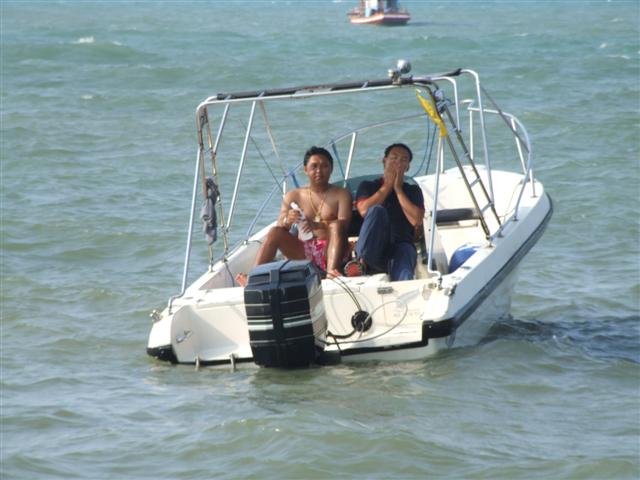 คำตอบที่ 171 พอท่านประธานออกไปหาดทรายแก้วแล้ว กะว่ารอคลื่นลมเบาลงจะตามไป....แต่กว่าจะออกได้ก็เริ่มมืดแล้ว พอออกไปก็เจอเรือ"ซันต้า" กับเรือ"อินทร์มณี" กลางทะเล...กำลังออกไปตกปลา..เลยออกเลยไปหาหมายตกปลาที่เกาะคราม ตอนเช้าถึงได้เข้าไปหาดทรายแก้ว...ฝ่าคลื่นกลับมาอย่างสุดระบม แต่ก็มันส์มากกกก