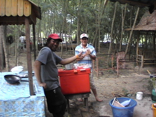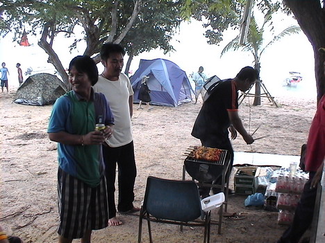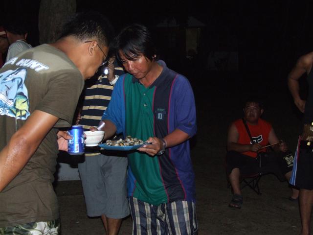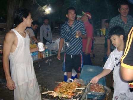 คำตอบที่ 65 อ้าว..ตอนเที่ยงผมอยู่ทำไม๊มีแต่ลูกชิ้นปิ้งกะปลาข้างปานทอดล่ะคร๊าบ..ปิ้งบริการโดยแม่ค้าหน่อยจากพัทยา(แฟนใครฟ๊ะ..อิอิ)..เล่นซะฟันแทบหลุดออกจากปาก..ร้อนจิงๆ..โดนกันไปทั่วหน้าหลายคน..ต่างยกมือป้องปากกันแทบไม่ทัน.. ..///เห็นว่าน้าระแหลมฉบังเอาบาบีคิวอร่อยสุดยอดมา..นึกว่าจะมีเหลือ..แต่กลับไปกินไม่ทัน หมดซะก่อนเสียดายมากครับ ส่วนน้าแมนขนเครื่องดื่มอย่างกะมาจากโรงงานเลยนะครับ..นั่งกินไป3วันไม่หมดแน่..