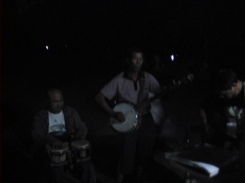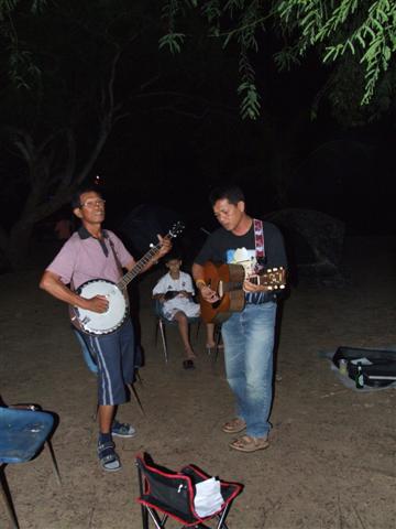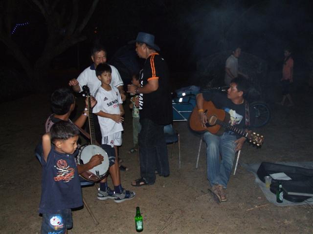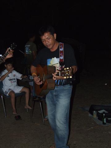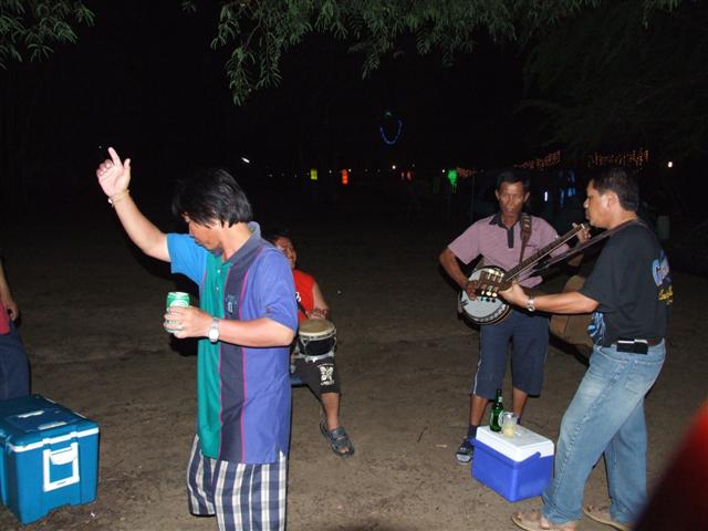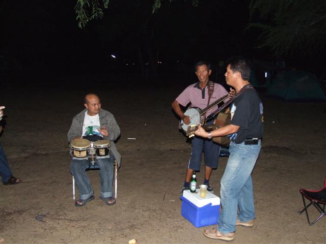 คำตอบที่ 67 พอเริ่มยามค่ำคืน....บรรยากาศ...ยิ่งสนุก....มีคอนเสริท์...มาบรรเลงเพลงขับกล่อมสร้างบรรยากาศแห่งความสนุกขึ้นมาเลยครับ...ทั้งกลองทั้งกีต้าร์....ผมว่าฝีมือสองท่านนี้สุดยอดอีกแล้วครับ....เป็นการแสดงสดๆที่หาชมได้ยากครับยอมรับในฝีมือการเล่นครับ...((ถูกใจผมมากเลยครับ)) เสียดายผมถ่ายจากกล้องวีดีโอ...ไม่มีแฟลต...ภาพออกมาเลยมืดไปหน่อยครับ