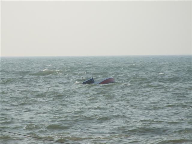 คำตอบที่ 136 ในระหว่างที่เรากำลังเอาเรือขึ้นจากน้ำ ภาพอันน่าสลดใจ ก็ปรากฎต่อหน้าของพวกเราทุกคน มันเป็นภาพเรือของชาวประมงท้องถิ่นที่จอดทอดสมอ หันหัวเรือสู้คลื่นไว้ แต่ไม่อาจต้านความแรง และความสูงของคลื่นที่พัดโถมกระหน่ำจนกระทั่งน้ำทะลักเข้าเต็มลำเรือ และเรือไม่สามารถพยุงตัวเองให้อยู่ได้ ค่อยๆทิ้งตัว จมลงสู่ก้นทะเลอย่างช้าๆ ช้าๆ