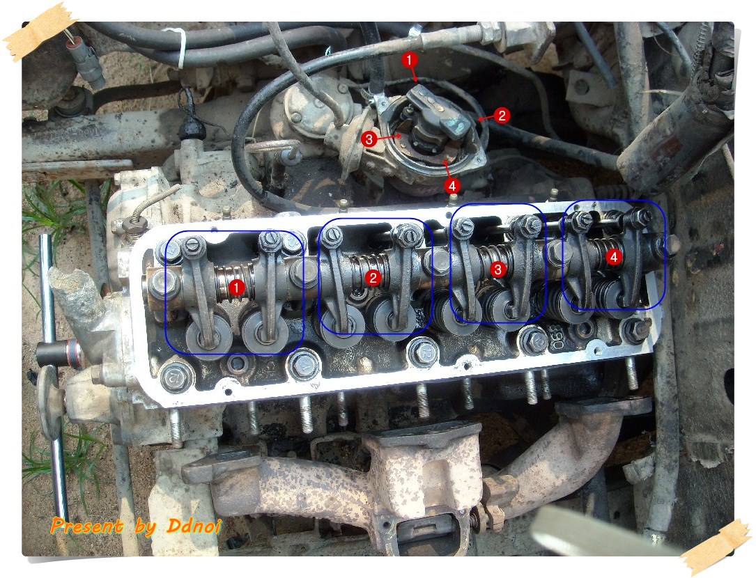 โดยเริ่มตั้งที่สูบที่ 1 (สังเกตุที่ขั้วสายหัวเทียน ตรงกับลูกที่ 1)