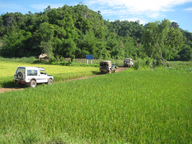 จุดเริ่มต้นที่จะไปดูฝูงค้างคาวบินออกจากถ้ำเย็นวันที่ 14 ระยะทาง ประมาณ 6 กม.(รถยี่สิบคัน) จอดถ่ายรูปเป็นช่วงๆ
