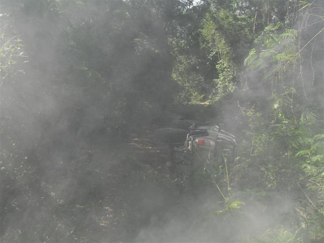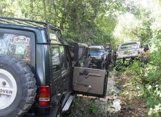 เออๆ ในรถพี่มี แบ๊ตไม่มีนะ แต่เสียบชาร์จคุยได้ ไปเสียบในรถเอ็งเลย ครับพี่ ว่าแล้วก็เรียกขานไป เย๊! ติดต่อได้แล้ว พี่ๆครับ ผม A-Rover ครับข่าวดีครับ พวกผม 2 คันตามมาแล้วครับพี่ๆ แต่ข่าวร้ายคือรถตกน้ำแอ้งแม้งไปต่อไม่ได้ ขอความช่วยเหลือครับ อิอิ