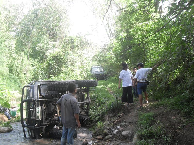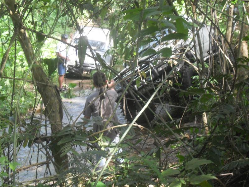 ระหว่างนี้ทำอะไรไม่ได้ นอกจากเก็บข้าวของที่กระจายลงน้ำไป ซักพักใหญ่ๆ เราได้ยินเสียงรถข้างนอก เย๊! รถจากผู้เฒ่า 4wd ตามขึ้นมา 1 คัน สวัสดีครับพี่ๆ มาช่วยผู้น้อยหน่อยครับพี่