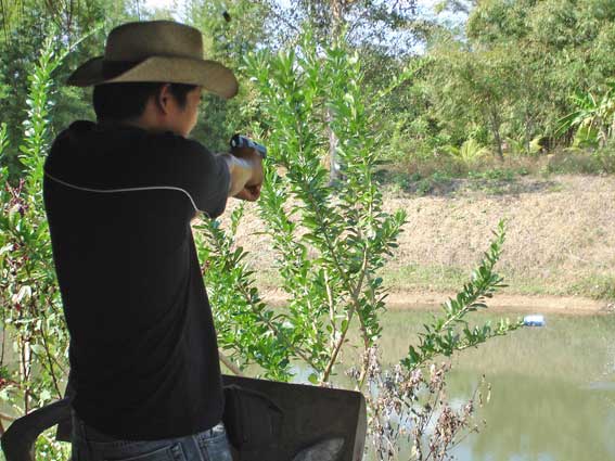 น่าสนใจคนถ่ายภาพ คนเล่นปืน กะจังหวะได้ดีจริง ปลอกกระเด็น ภาพไม่ไหวเลยครับ แต่กระป๋องเบียร์ไม่กระเด็นนี้ซี่ ภาพเลยไม่สมบูลย์....!