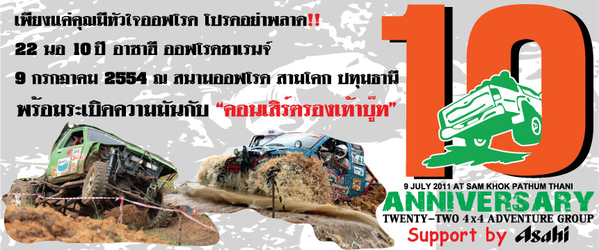 ทีมงาน WWW.TEENTOA.COM ขอร่วมแสดงความยินดีด้วยกับความสำเร็จอย่างสูงสุดของชมรม 22 นอ มิตรภาพและเพื่อนพ้อง " 22 นอ 10 ปีอาซาฮี ออฟโรดชาเรนจ์ "