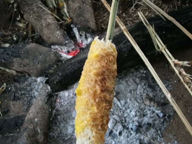 ข้าวโพดชุบน้ำเกลือปิ้งไฟแก้หนาว