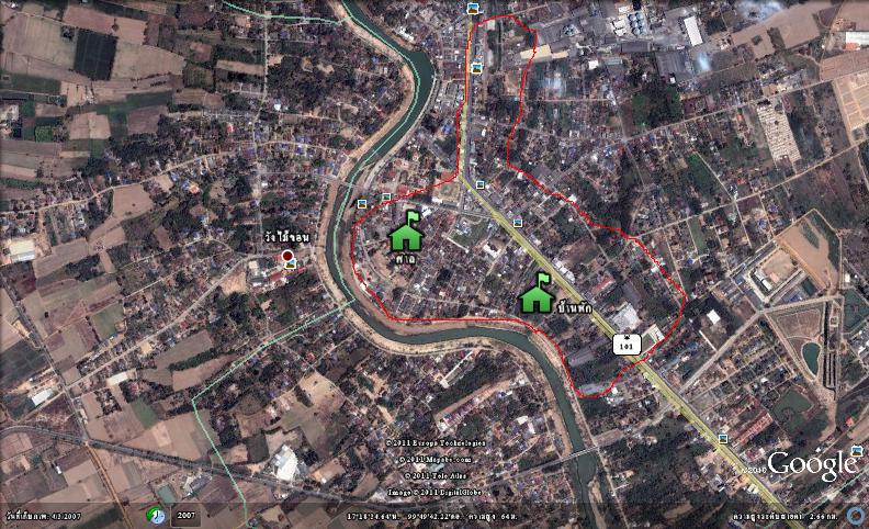 ในวงสีแดงคือบริเวณที่เหลือ นอกนั้นน้ำท่วมกันถ้วนหน้า มากบ้างน้อยบ้าง..แถมคืนนี้(๓)น้ำจากวังชิ้นน่าจะมาถึง....