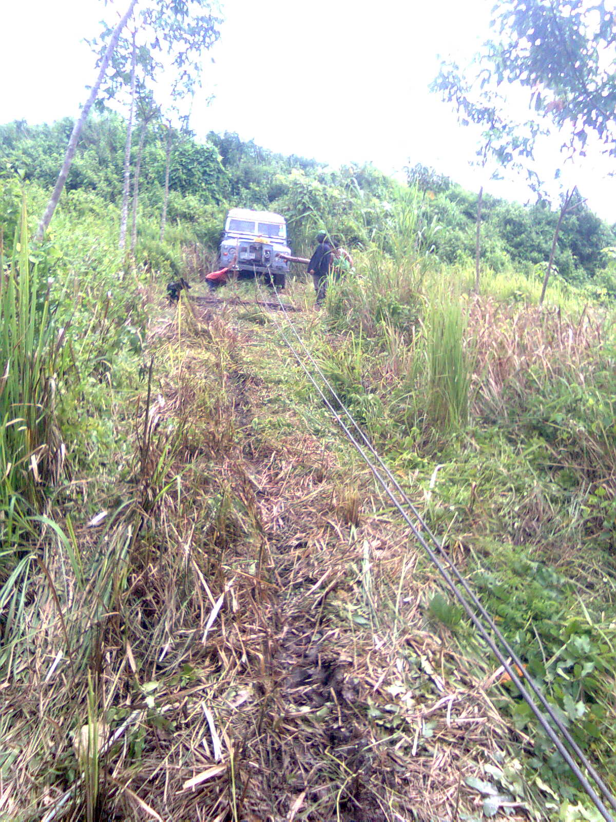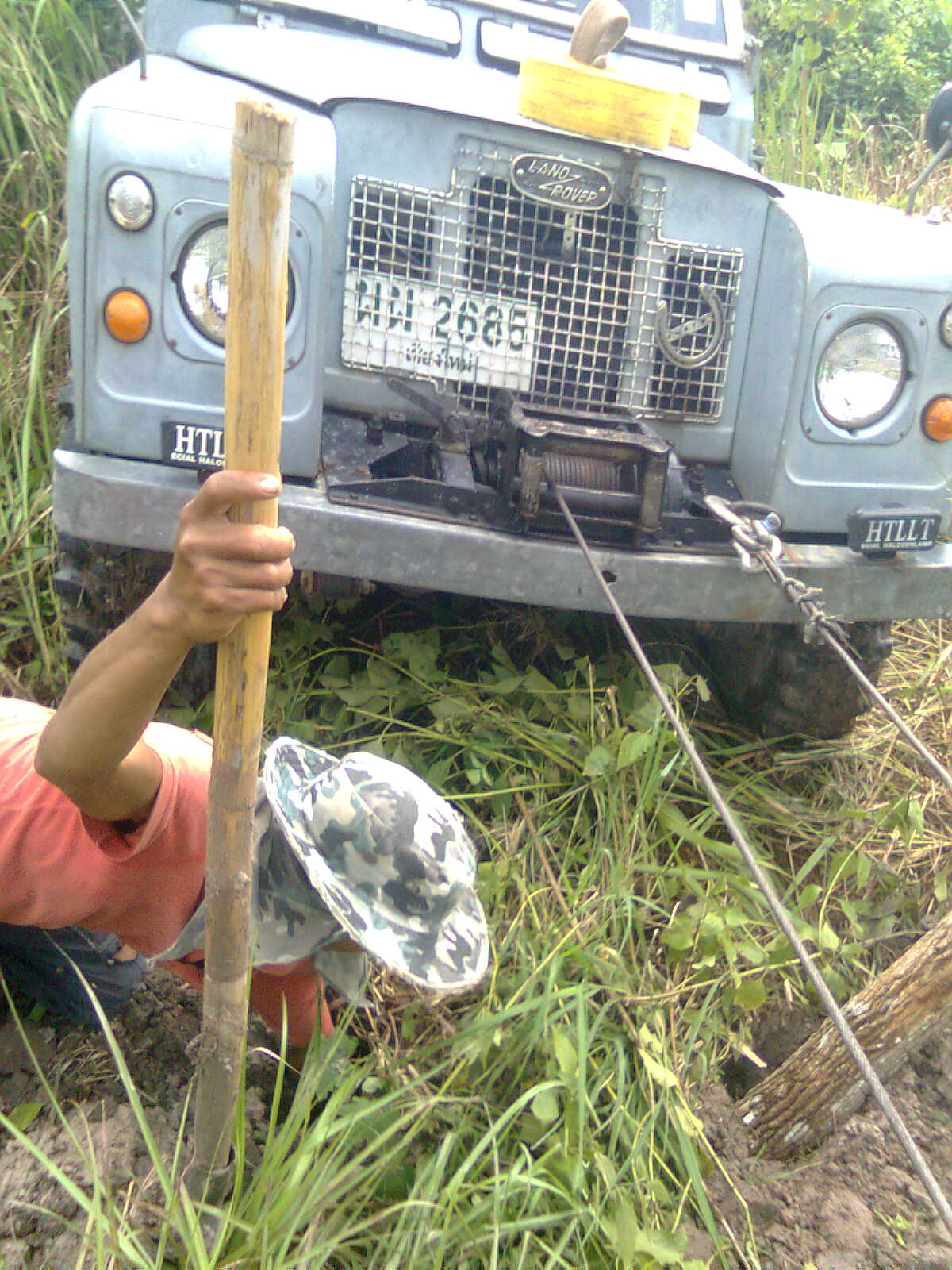 ระวังสายสลิงขาดระหว่างดึงนะครับ อาจเปิดฝากระโปรงขึ้นไว้เป็นโล่ป้องกันคนในรถ หรือมีกระสอบคลุมสายสริงไว้บ้าง