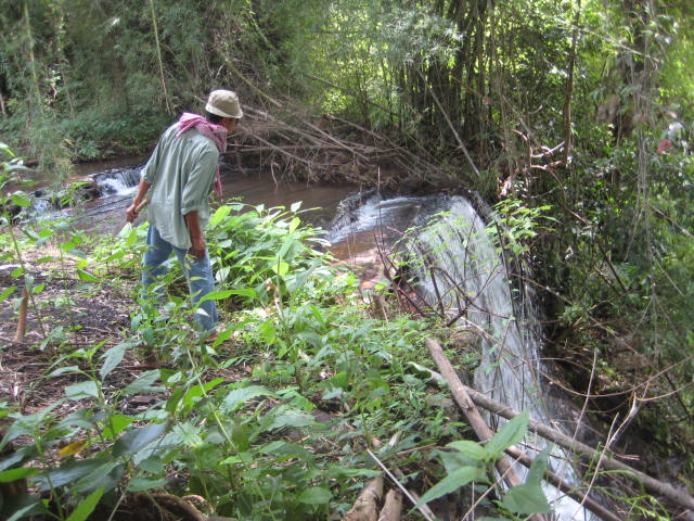 ลำห้วยย้อนขึ้นไปถึงน้ำตกขนาดใหญ่