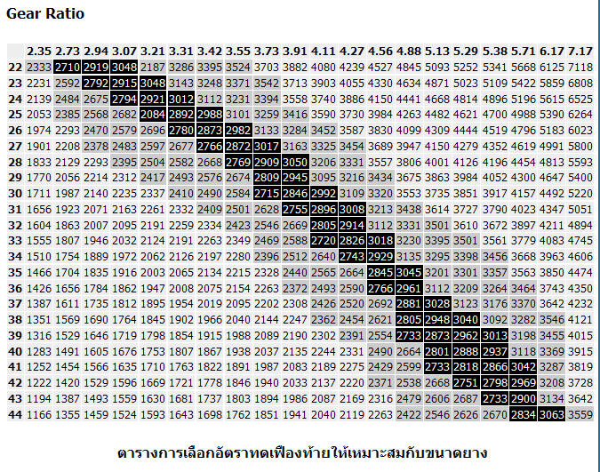 ของคุณ lanta205 ใช้สูตร เครื่อง 5VZ-FE เกียร์ Auto 5VZ-FE ชน Transfer MPI ใช้ยาง 240/70 R16 ถ้าอัตราทดรวม 5.005 อยู่เหรอครับ ถือว่าเหมาะแล้วทั้งต้นและปลายไปได้ทั้ง On และ Offroad