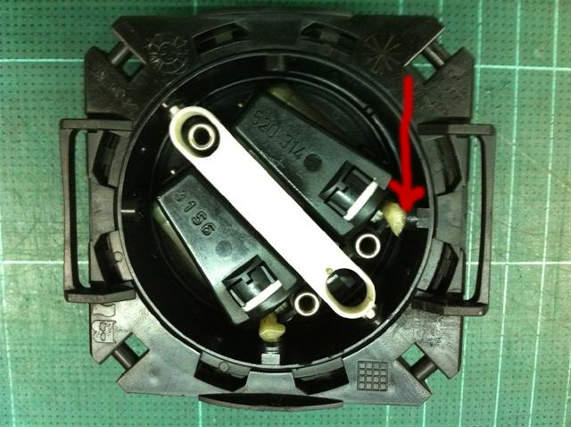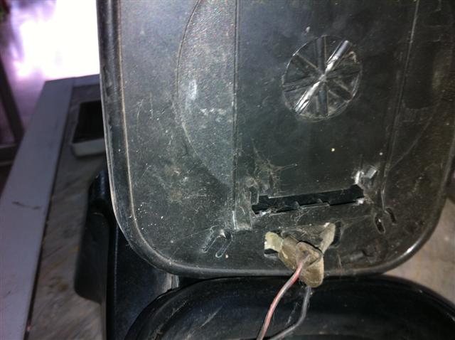 ตัวนี้แหละครับตัวปัญหา ถ้าเอากระจกออกไม่ถูกวิธี จะทำให้ตัวล๊อคกระจกหักได้ ของผม หักตรงที่ลูกศรชี้ครับ ดีนะหักข้างเดียวยังพอเชื่อมใช้งานต่อได้