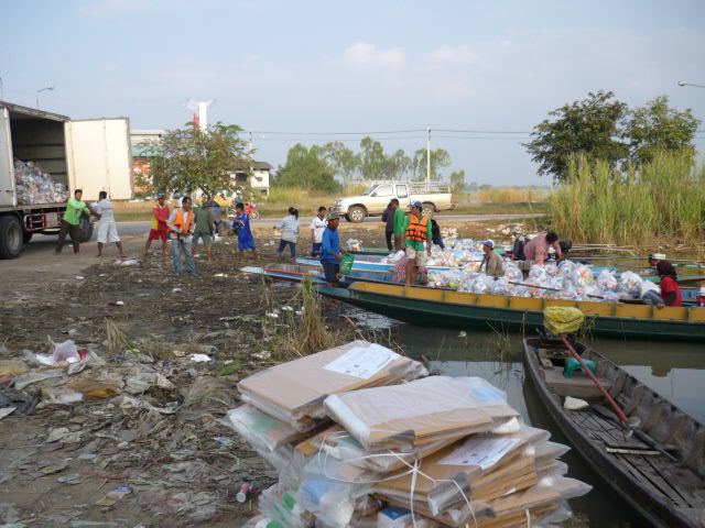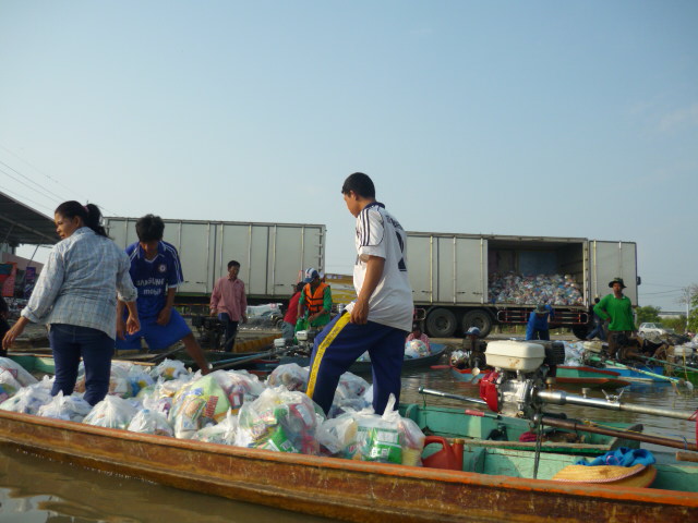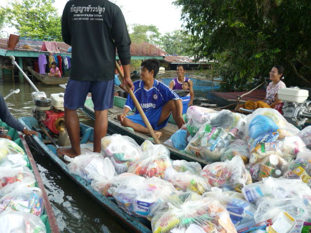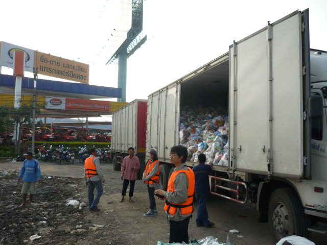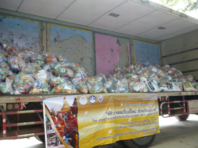 หลังจากเสร็จพิธีการ เราจะนำสิ่งของทั้งหมดขึ้นไปแยกจัดแพ็ค คัดแยก ที่บนวัดศรีโสดา และนำถุงยังชีพที่จัดเตรียมเสร็จแล้วจัดเข้ารถ 10 ล้ออีกครั้ง