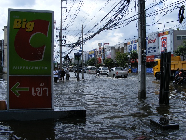 ตอนนี้บ้านผม ตะวันออกเข้า คู้บอน ตะวันตกถนนพหลฯ (ร.พ.เซ็นทรัล เยนเนอรัล) เหนือก็ซอยพหลฯ 48 ศาลเจ้าพ่อเสือ เกือบล้นถนนแล้ว ด้านทิศใต้ยังไกล ยังเฝ้าบ้าน ต้อรอดูว่าน้ำจะถึงเมื่อไร ลุ้นว่าท่วมหรือเปล่าครับ เหนื่อยใจ ตอนนี้เก็บของหนีน้ำไว้แล้ว