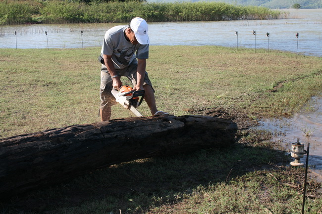 คุณหมู เจ้าของสถานที่ลงมือเตรียมเชื้อเพลิงด้วยตนเอง เพื่อรับมือกับความหนาวเย็นของคืนนี้