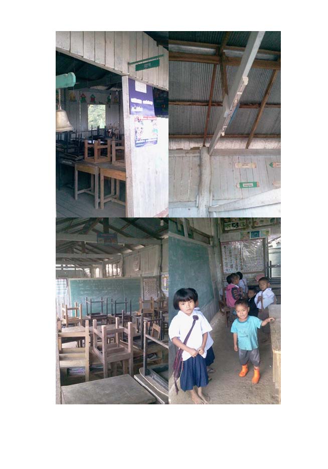 ทางด้านอาคารและสถานที่เรียน อาคารเป็นแบบไม้กั้นห้อง เป็นห้องตามลำดับชั้น ชั้นละ 1 ห้อง ด้านข้างใช้ไม้ทั้งหมดและหลังคาใช้แบบสังกะสี พื่นห้องและฝาผนั้งห้องเรียนเป็นไม้แผ่น บ้างห้องที่ทีมสำรวจเขาไปพบคือพื่นไม้ได้ผุและขาดหายไปในบ้างห้อง ซึ่งทำให้เหลือพื่นดินธรรมดา เด็กๆก็จะต้องอยู่กับพื่นดินทั้งหน้าฝนและหน้าหนาว ตลอดทั้งปี เด็กบางคนไม่มีรองเท้าใส่ต้องใช้เท้าเปล่าในการเรียน