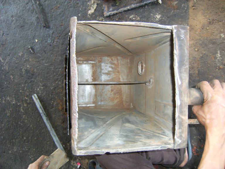 ตอนนี้กำลังปะส่วนที่ผุครับ..เอากระดาษทรายขัดภายใน เนื้อเหล็กของเดิมที่ขึ้นเรือมาจากอังกฤษเกือบห้าสิบปีแล้วยังสภาพดีอยู่ครับ
