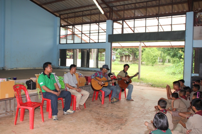 พี่ หนุ่ม สกล กับผมร่วมเล่นดนตรีให้เด็กๆ ฟังครับ