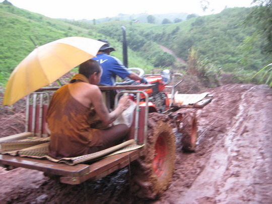 ภาพการเดินทางของพระสงฆ์ เพื่อไปปฏิบัติกิจนิมนต์ ที่สักง่า เมื่อ ปี 53