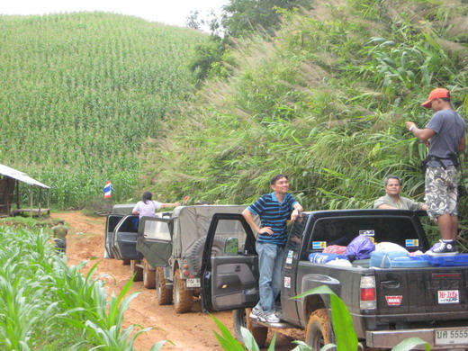 มาว่าเรื่องของเราดีกว่า....เจ้าของพื้นที่ตรวจสอบเส้นทางใหม่มาให้ได้ความว่า เป็นทางผ่านไร่ผ่านสวน(มิใช่เส้นทางสัณจรปกติ)ประมาณ๑๐กว่าโล รวมทางเดิมอีก๑๐กว่าโล(ไม่รวมกับทางดำและคอนกรีต) ....มีต้นข้าวโพดไว้มัดวิ้น....ถ้าฝนตก.......แต่หากไม่มีฝนขับกินลมชมวิวสบายๆ