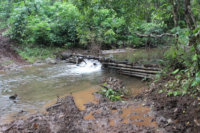 จากเนินบุญอู่แรก..ได้รอนานเหมือนกันกว่ารถไถจะกลับมาลากให้หน่อยแล้วก็เดินทางกันต่อเริ่มเขาเขตป่าทึบมากขึ้นๆๆ และตรงนี้เป็นห้วยที่ชาวบ้านทำเป็นฝายกั้นน้ำเพื่อชลอน้ำเอาไว้ใช้เป็นประปาภูเขาของหมู่บ้านและยังรอผู้มีจิตรอาสาและอยากเที่ยว ท่านผู้ใหญ่และ อบต.บอกว่าอยากเป็นคอนกรีตเล็กๆไว้ใครสนใจหลังไมค์ได้ครับ