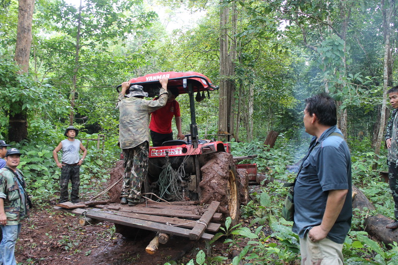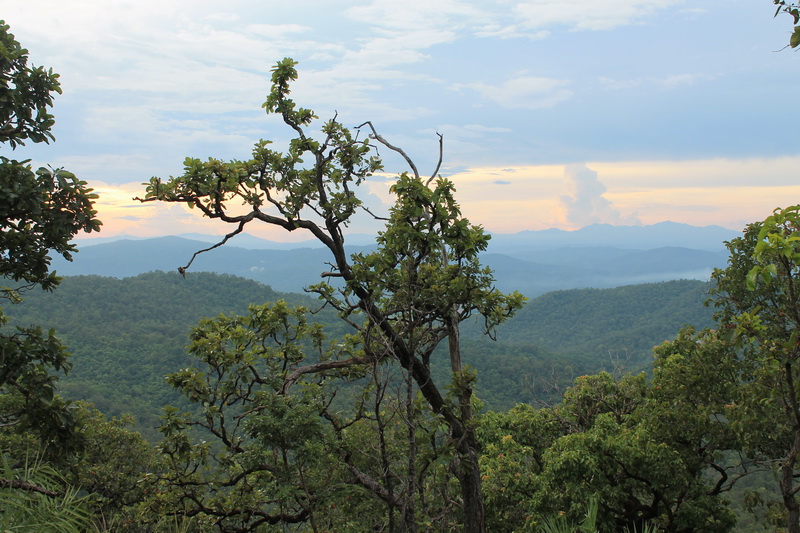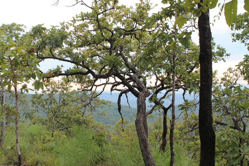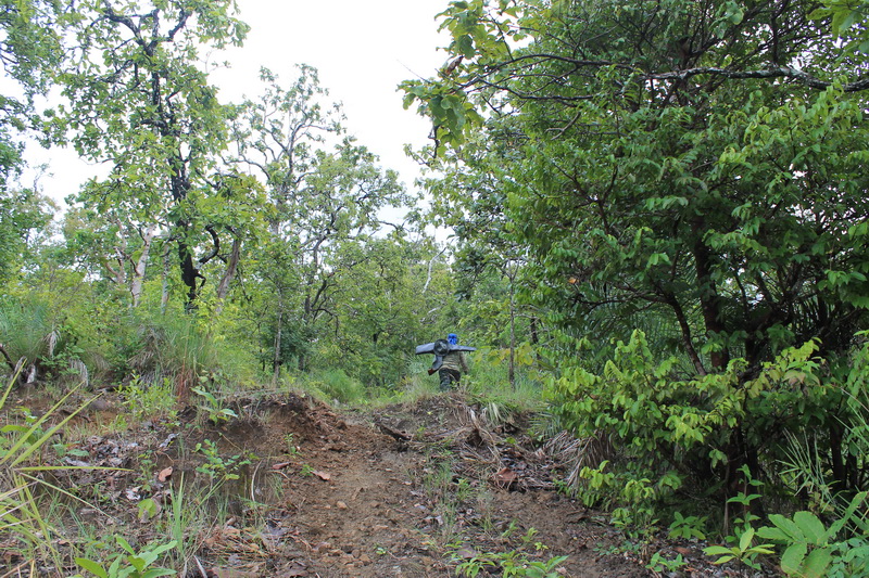 จากจุดฝายและบวชตะเคียน..ยาวๆๆงผ่านป่าดงพงพี..หลายหุบหลายห้วยหลายหินพอควรแล้วแต่ผมไม่ได้ถ่าย..จนถึงหมดทางรถแล้วจอดไว้รวมของจำเป็นใส่รถไถแล้วก็เดินต่อซึ่งตอนนี้ลูกทีมเริ่มใจไม่ดีเพราะนอกจากต้องเดินแล้ว..เจ้าคูโบต้าก็ยังฟรีปั่นไม่ขึ้นเป็นนานแสนนานไม่รู้จะแก้งัย..เดินนำหน้าไปก่อนแล้วกันซึ่งต่างคนต่างไม่เคยทาง..จนเริ่มสูงและมองเห็นวิวย้อนกลับมา เริ่มหายใจไม่ทันหยุดชมวิวบ้าง