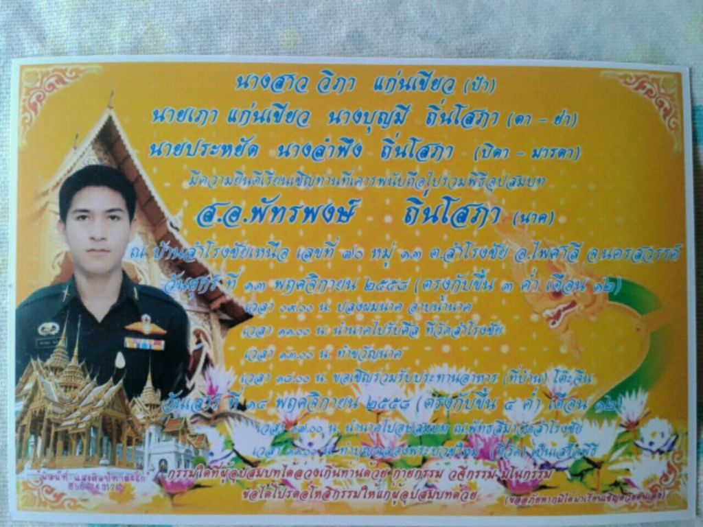 เรียนเชิญพี่ๆเพื่อนๆครับ เนื่องด้วยผมจะบวชลูกชาย13-14พย.58 เรียนเชิญนะครับ