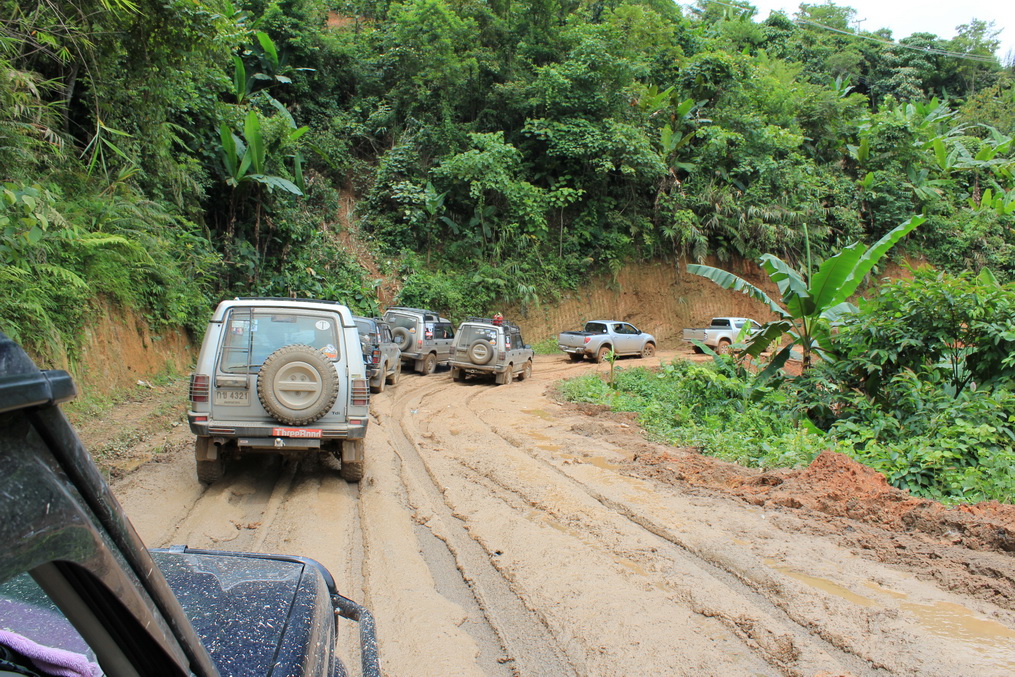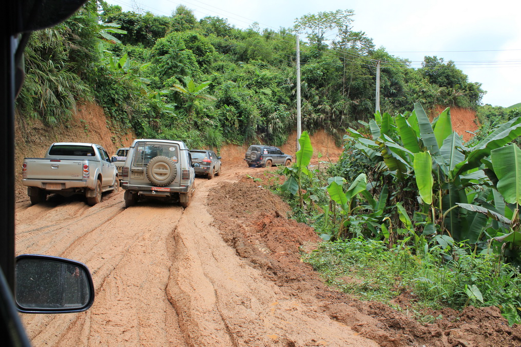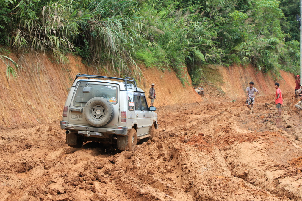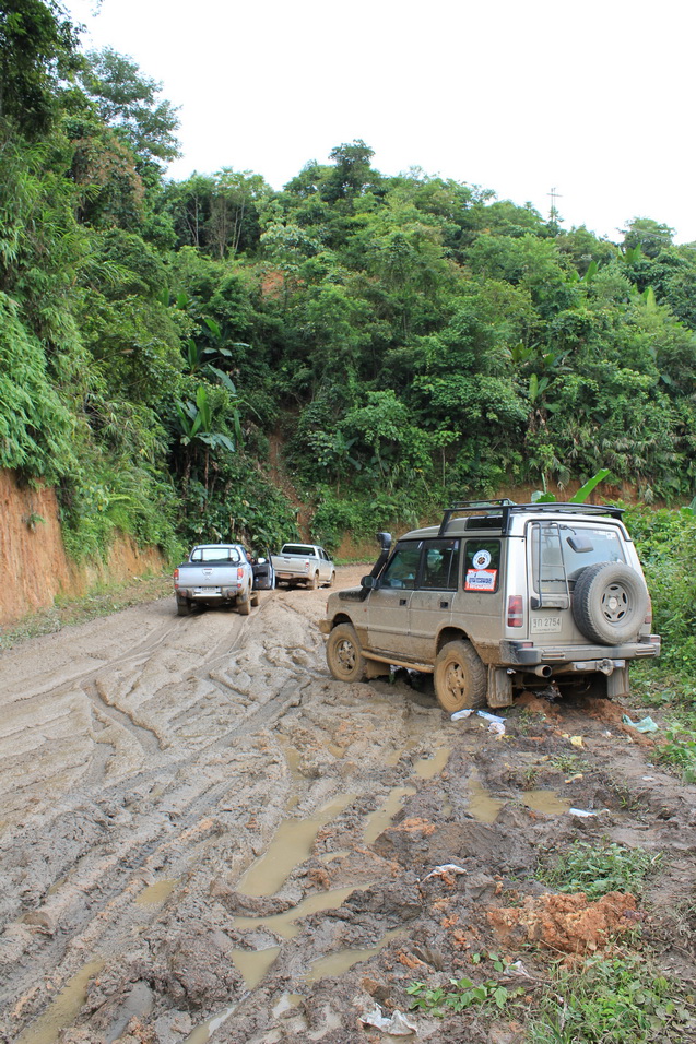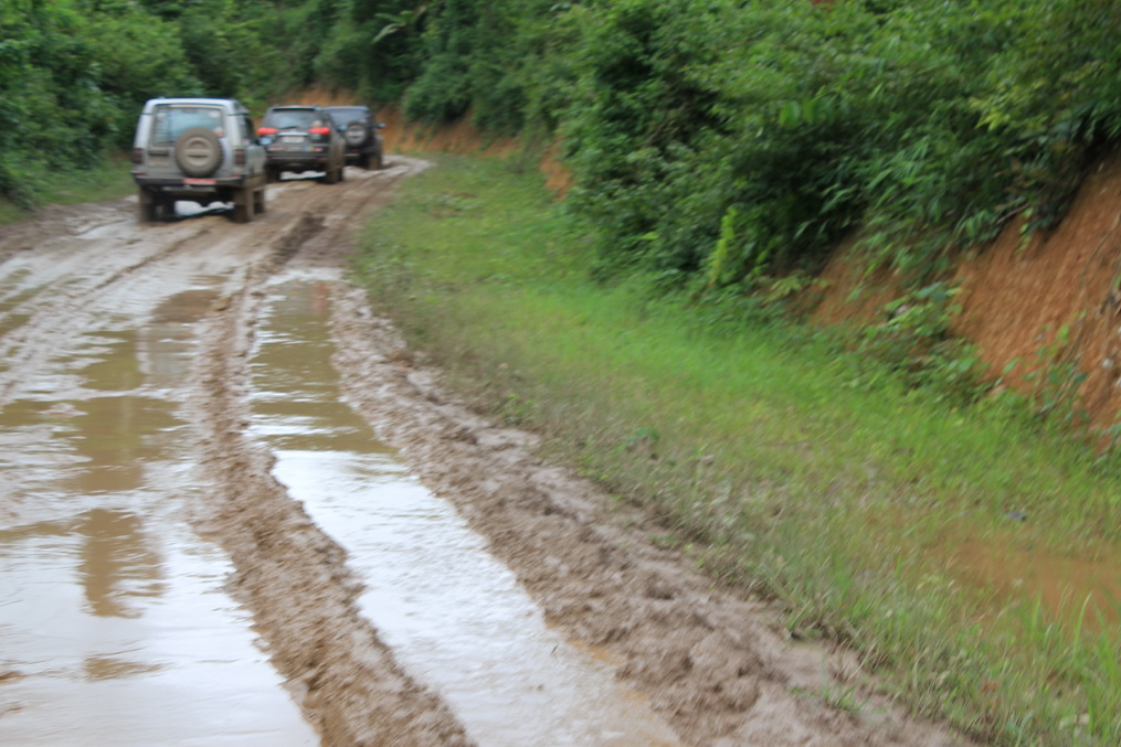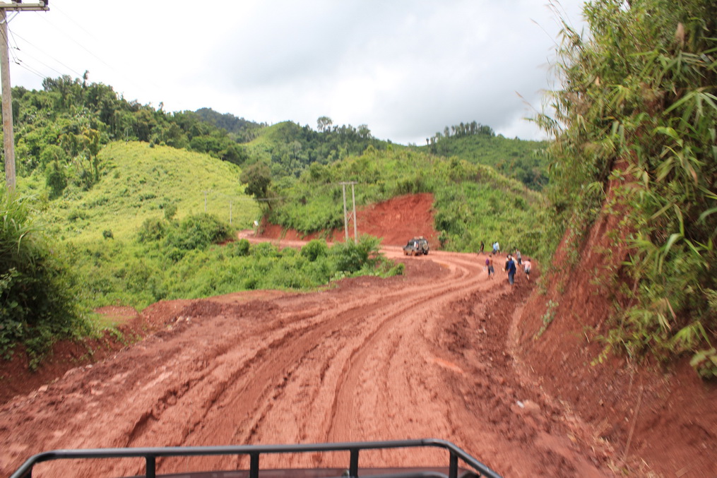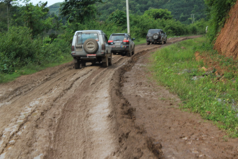 เข้าสู่ช่วงที่สอง...เนื่องจากมีฝนตกติดต่อกันหลายวันก่อนที่ขบวนเราเดินทางทำให้สภาพถนนเสียหายมากมีรถประจำทางติดค้างอยู่บนเนินสองวันไม่สามารถเดินทางไปต่อได้ต้องจอดขบวนรอให้รถแม๊คโครลากรถโดยสารให้พ้นทางก่อน