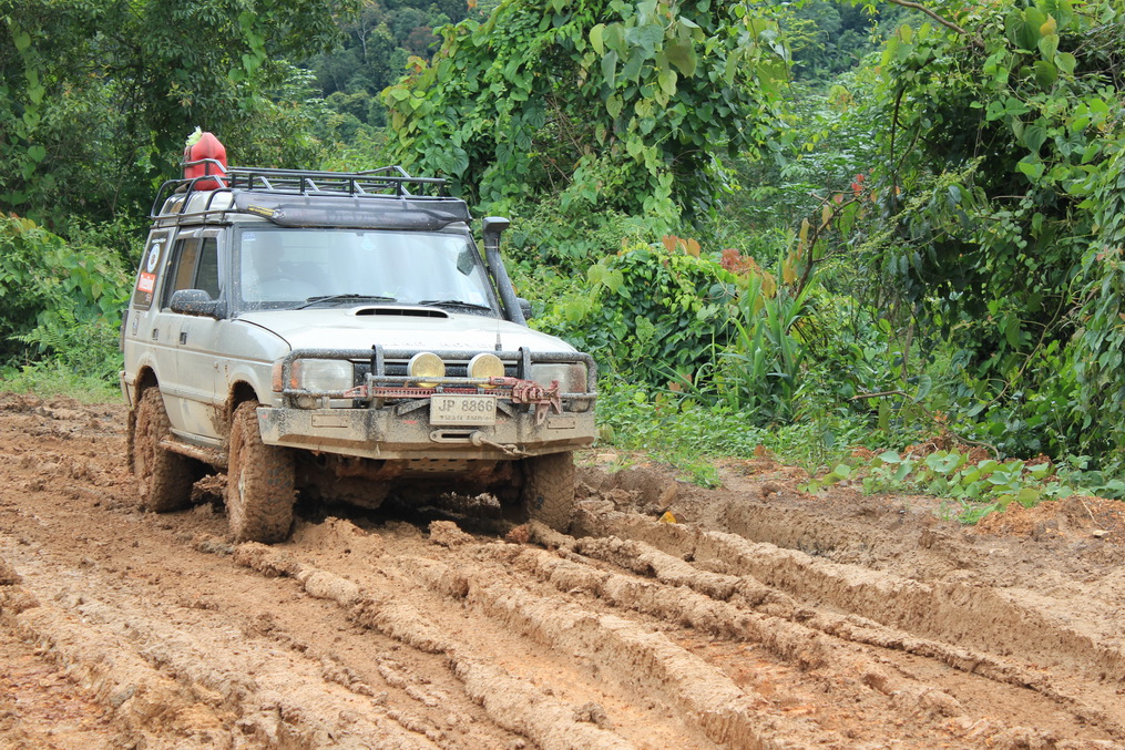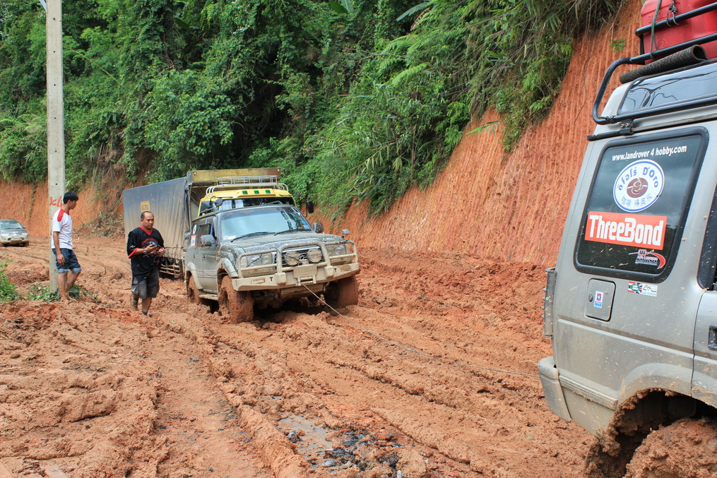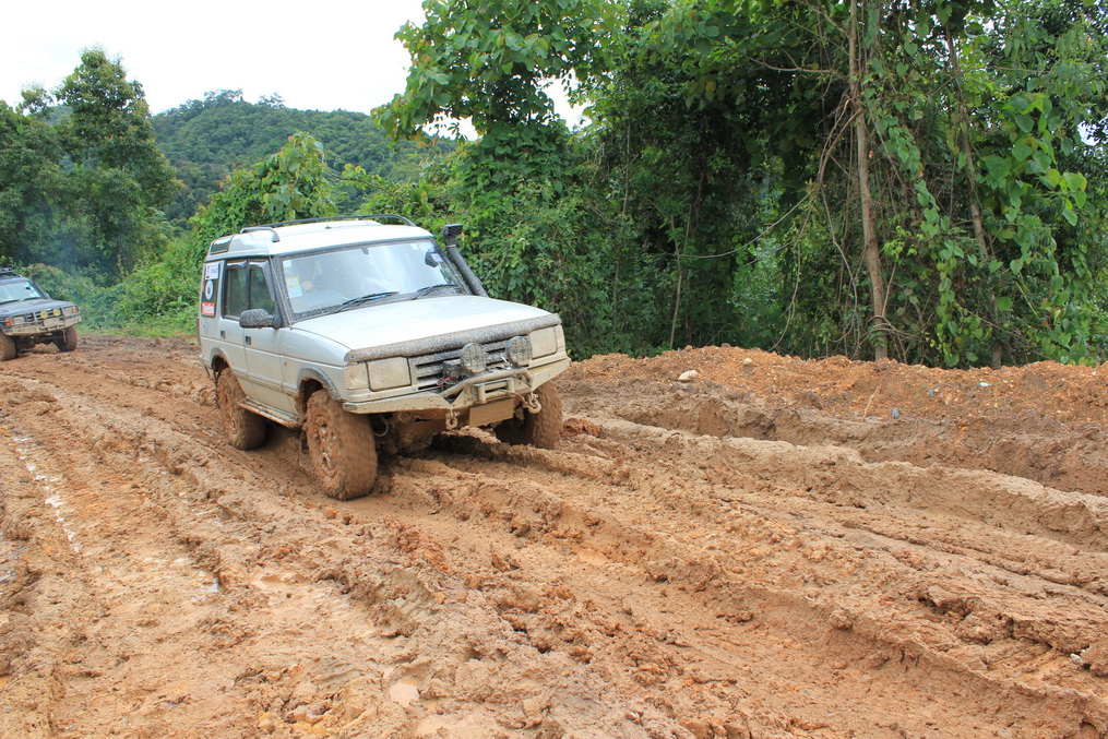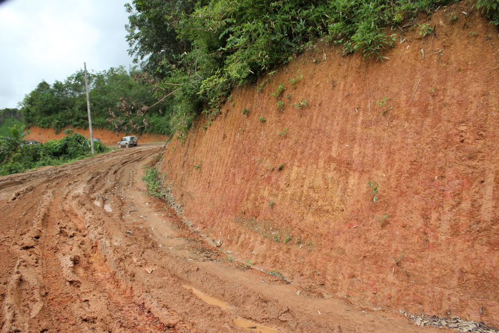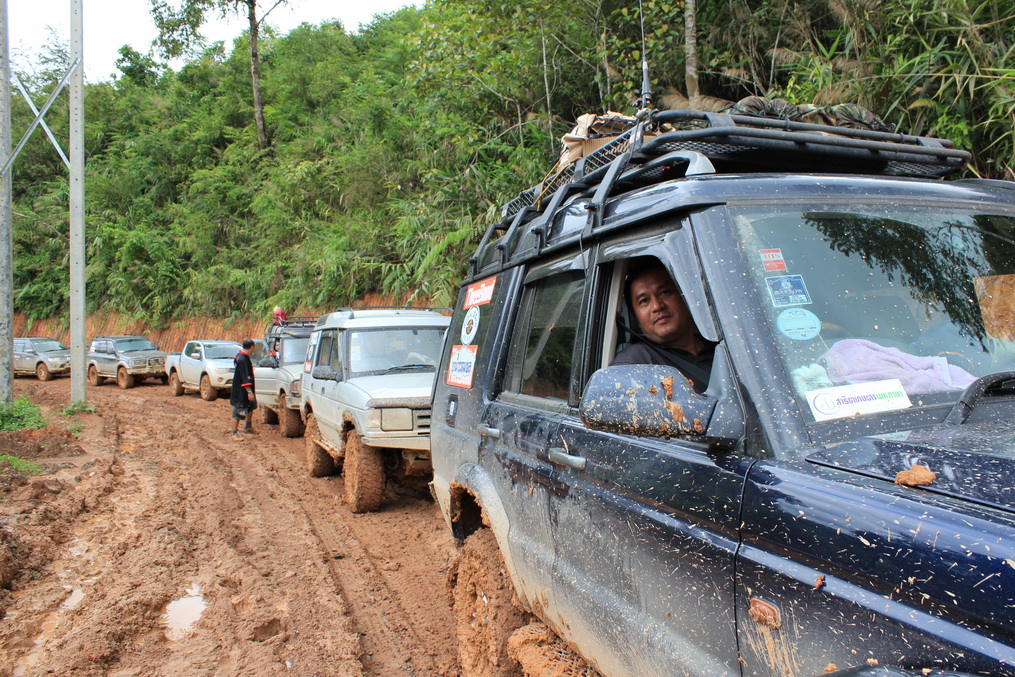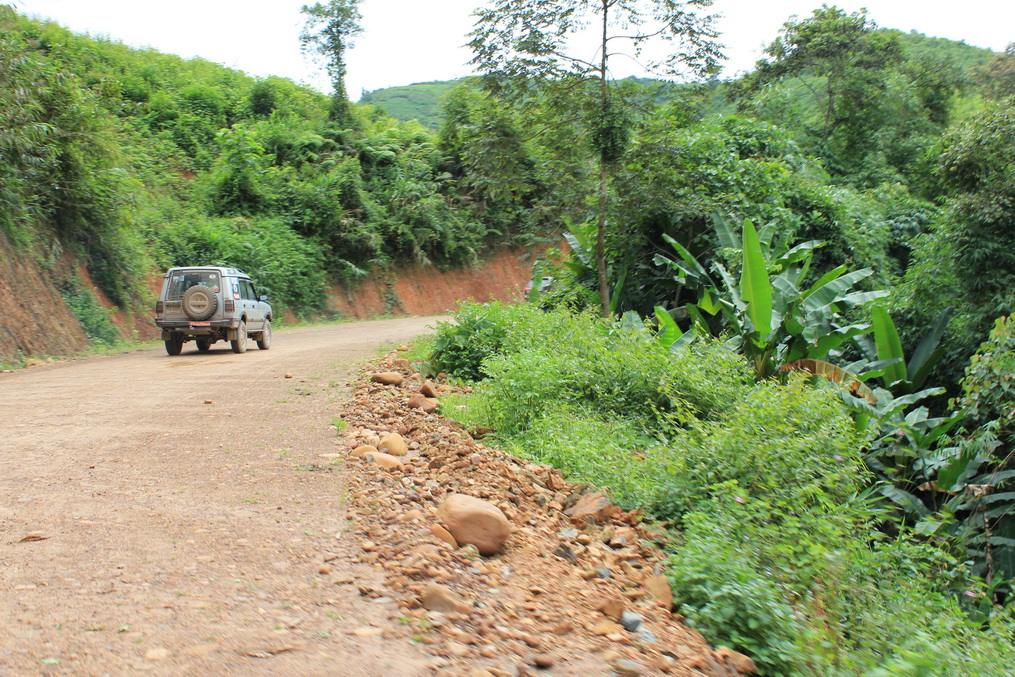 เข้าสู่ช่วงที่สอง...เนื่องจากมีฝนตกติดต่อกันหลายวันก่อนที่ขบวนเราเดินทางทำให้สภาพถนนเสียหายมากมีรถประจำทางติดค้างอยู่บนเนินสองวันไม่สามารถเดินทางไปต่อได้ต้องจอดขบวนรอให้รถแม๊คโครลากรถโดยสารให้พ้นทางก่อน