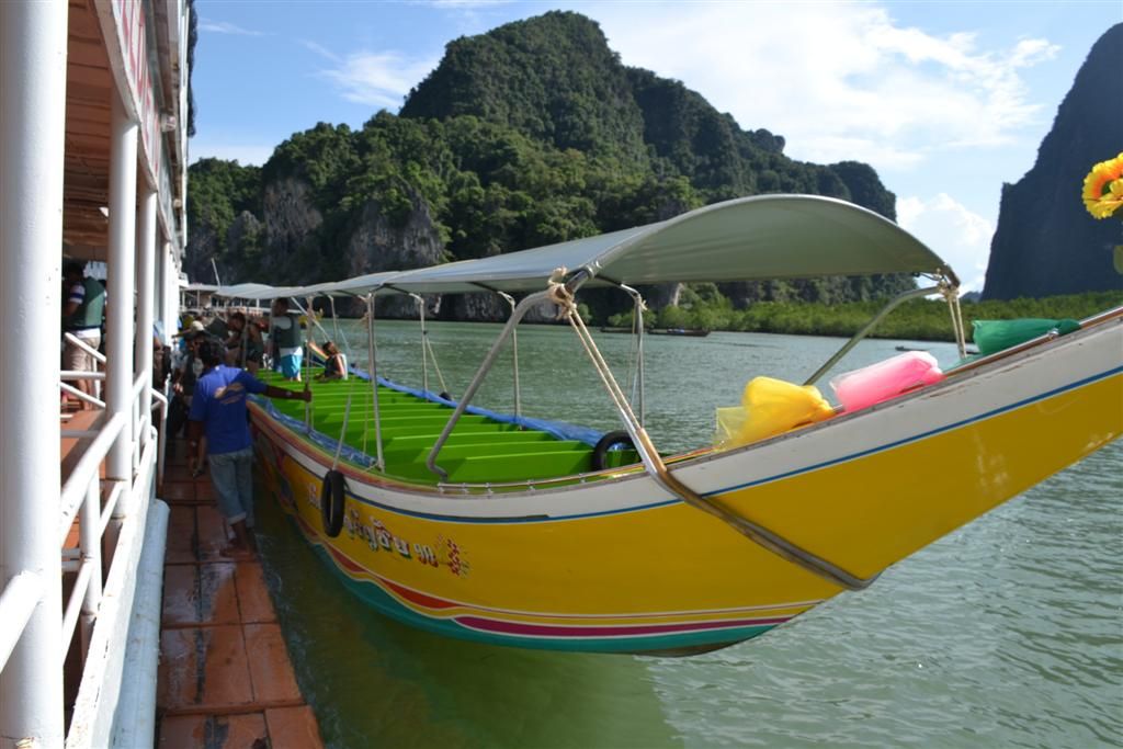 เรือหางยาวของเรา มาจอดเทียบข้างเรือแพ ที่หน้าถ้ำลอด อ่าวพังงาครับ...เห็นว่าจะลงเรือแคนู ไปชมถ้ำลอดกัน....