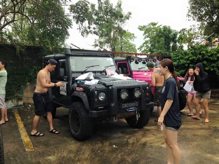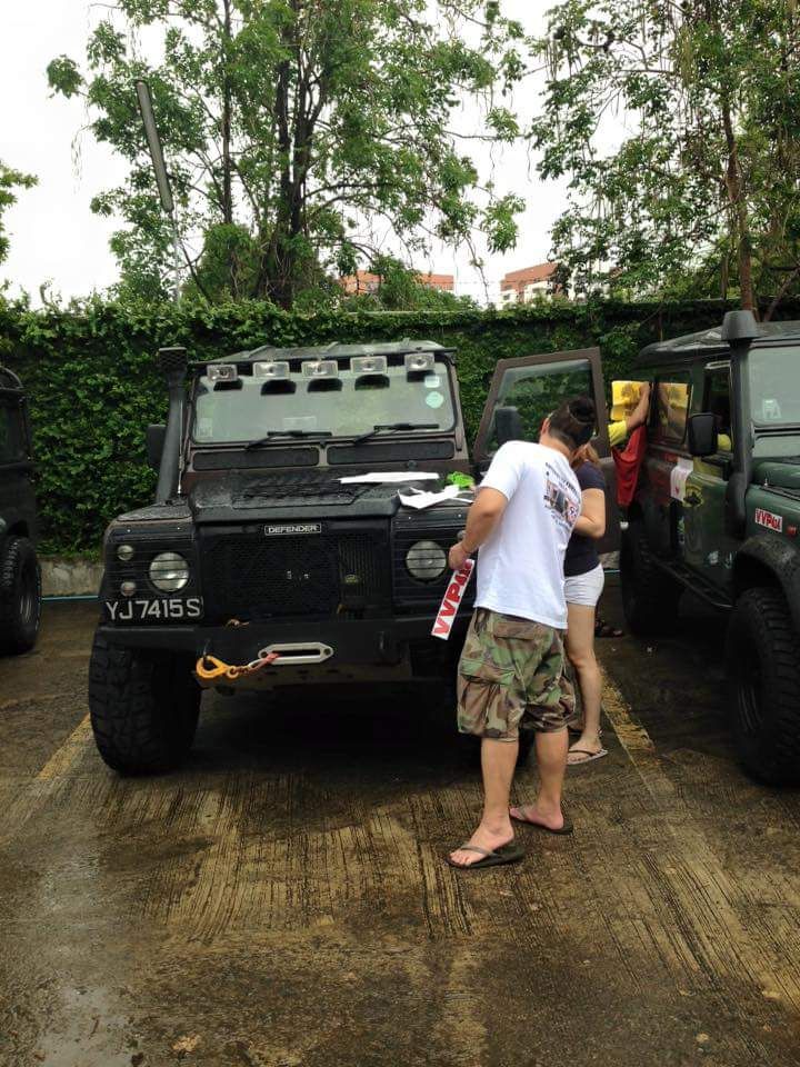 หลังจากอิ่มท้องก็ได้เวลาบุกเมืองไทยแล้ว ตัวแทนบริษัทนำธงโบกสะบัดปล่อยขบวนรถ ฝูงดีเฟนเดอร์สีส้ม ออกอาละวาทแล้ว ขบวนรถยาวพอสมควรเลยทีเดียว ครั้งนี้ยกความดีให้หัวหอกทีมมาเซียจริงๆ คุณวิกกี้