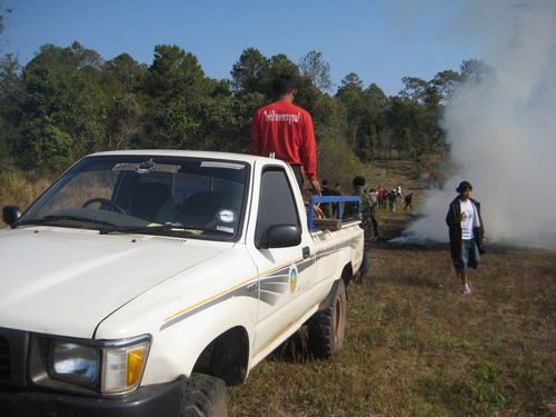 เอาสัมภาระลง แล้วทานอาหารกลางวันกันเสร็จแล้ว เราจะไปทำกิจกรรม ทำแนวกันไฟ