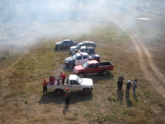 ร่วมกับเจ้าหน้าที่ไฟป่าและเจ้าหน้าที่อุทยาน บริเวณหอส่องสัตว์ตามที่ได้นัดหมายกับเจ้าหน้าที่ไว้