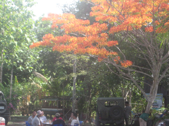 หลังอาหารเช้า ย้ายมามุมใต้ต้นหางนกยูง (ดอกกำลังสวย)