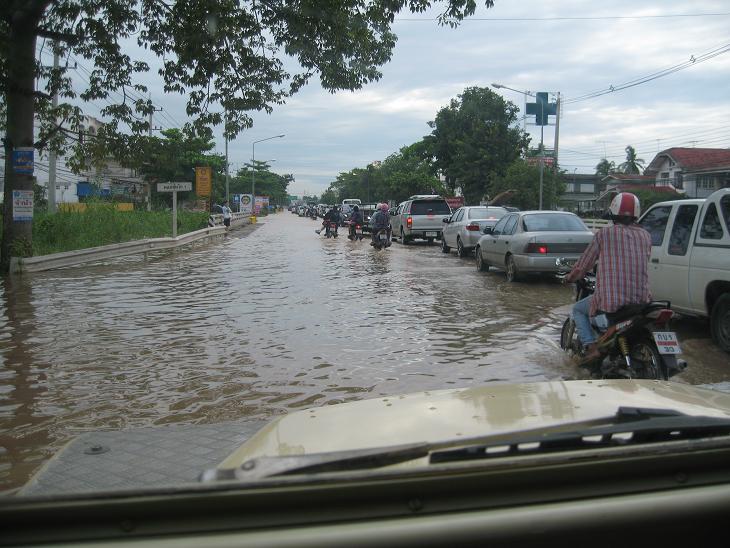 เช้าวันนี้ น้ำจากแก้มลิงทะเลหลวงได้ล้นเข้าเมืองสุโขทัย ถนนสายหน้าบ้านมีสภาพเป็นคลอง โชคดีที่เรามีเจ้ากล้วยไข่ ถนนเลนส์ซ้ายจึงเป็นของเรา