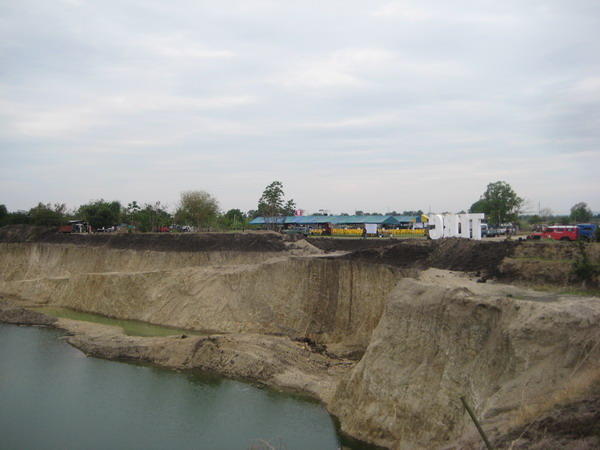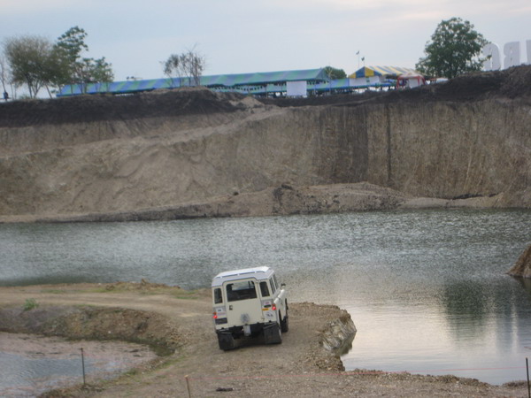 มุมกว้างบริเวณงาน สนามทดสอบยังไม่เปิด มีพี่แลนด์จอดขวางทางอยู่ (ประหยัดแรงงานใช้พีแลนด์แทน)