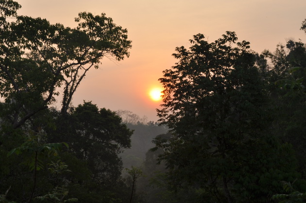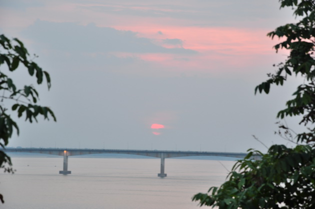 พระอาทิตย์ตกที่สะพานข้ามแม่น้ำโขง ณ.เมืองปากเซ