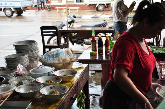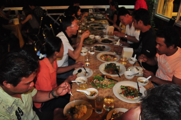 อาหารเย็นที่ปากเซ ริมแม่น้ำโขง