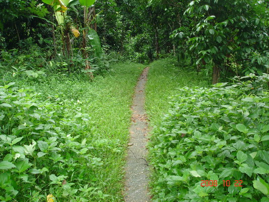 ภาพนี้ถ่ายจากสวนขึ้นไปยังตีนเขา..ช่วงครึ้มฟ้าครึ้มฝน เมฆ หมอก..บังเขา..มองไม่เห็น..วันนี้คนงานไปถางหญ้าอีกสวนเลิกงานจะเข้าไปดูแด่ว ..ถ่ายรูปมาให้ชม..เป็นสวนทางคอนกรีตถึง..แต่กว้างศอกหนึ่ง...หึๆๆ..ทางมอไซด์...ครับท่าน..
